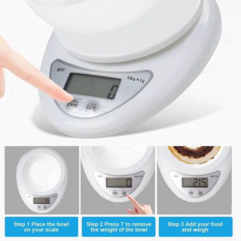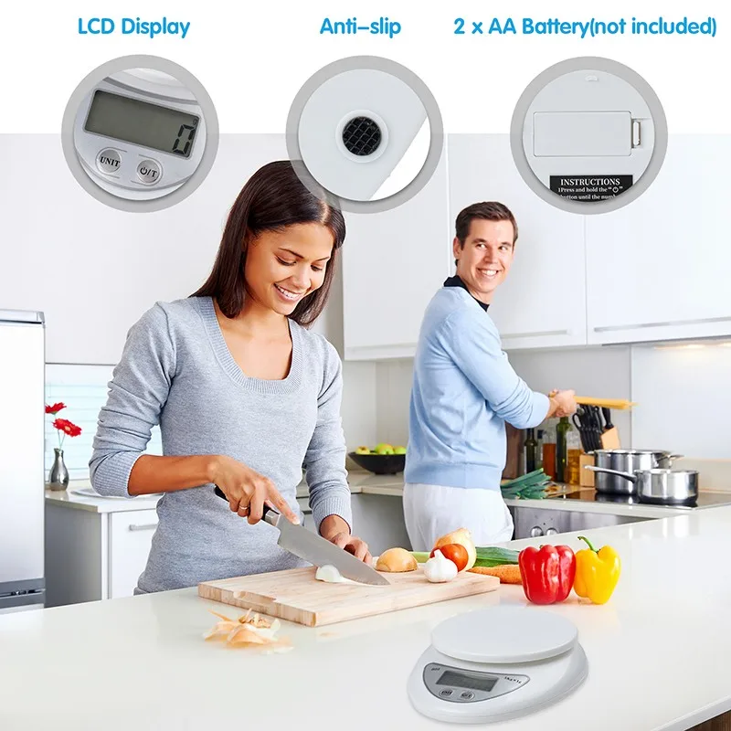 1Pc 5kg With Tray Portable Digital Scale Scales Food Balance Measuring Weight Kitchen LED Electronic Scales Kitchen Tools