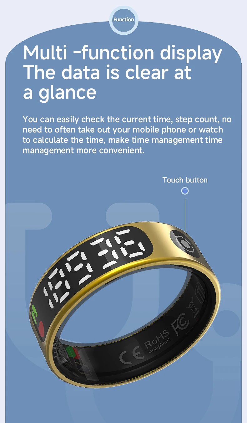 2025 nuevo anillo inteligente pantalla Digital 5ATM impermeable ritmo cardíaco, sueño y salud monitoreo multideportivo anillo de moda para hombres y mujeres