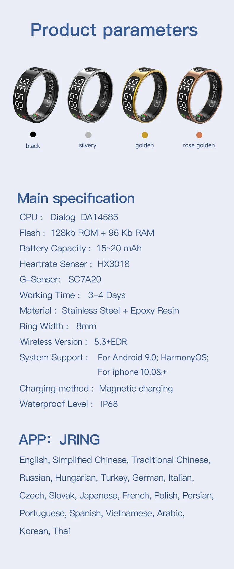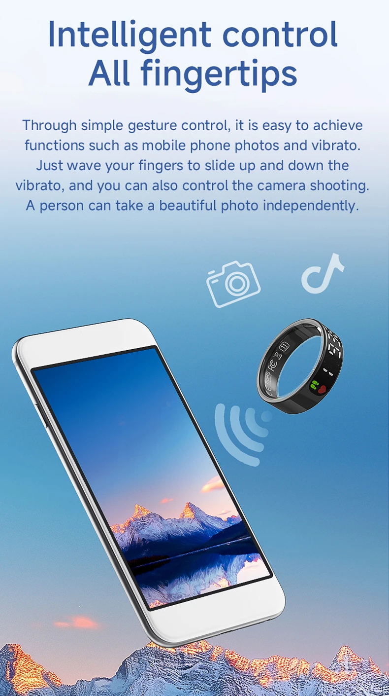 Admite montañismo, ciclismo, carrera y otros modos deportivos, y puede monitorear el ritmo y la cantidad de pasos en tiempo real para ayudarlo a explorar un mundo más grande y ampliar sus límites.Después de usar el anillo, puede admitir una medición precisa del oxígeno en sangre y el monitoreo del sueño, y asociar datos con la aplicación del teléfono móvil, para que pueda prestar más atención a su salud y ayudar a desarrollar buenos hábitos de vida.
