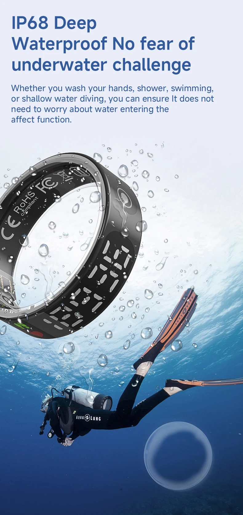 Anillo inteligente de 2025, 5ATM, pantalla Digital resistente al agua, Control de gestos, monitoreo de oxígeno en sangre, múltiples modos deportivos, anillo inteligente
