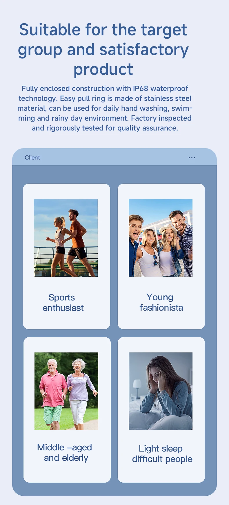 IP68 a prueba de agua profunda, ya sea para lavarse las manos, ducharse, nadar o bucear poco profundamente, puede garantizar su funcionamiento normal sin preocuparse de que entre agua y afecte la función.