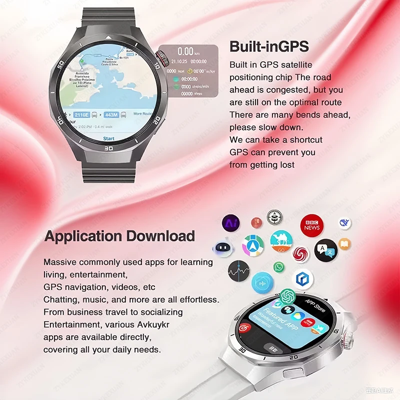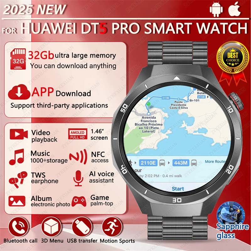 2025 nuevo para HUAWEI Watch DT5pro 4GB de memoria SmartWatch hombres GPS Google mapas vídeo reproductor de música aplicación tienda descargar relojes deportivos