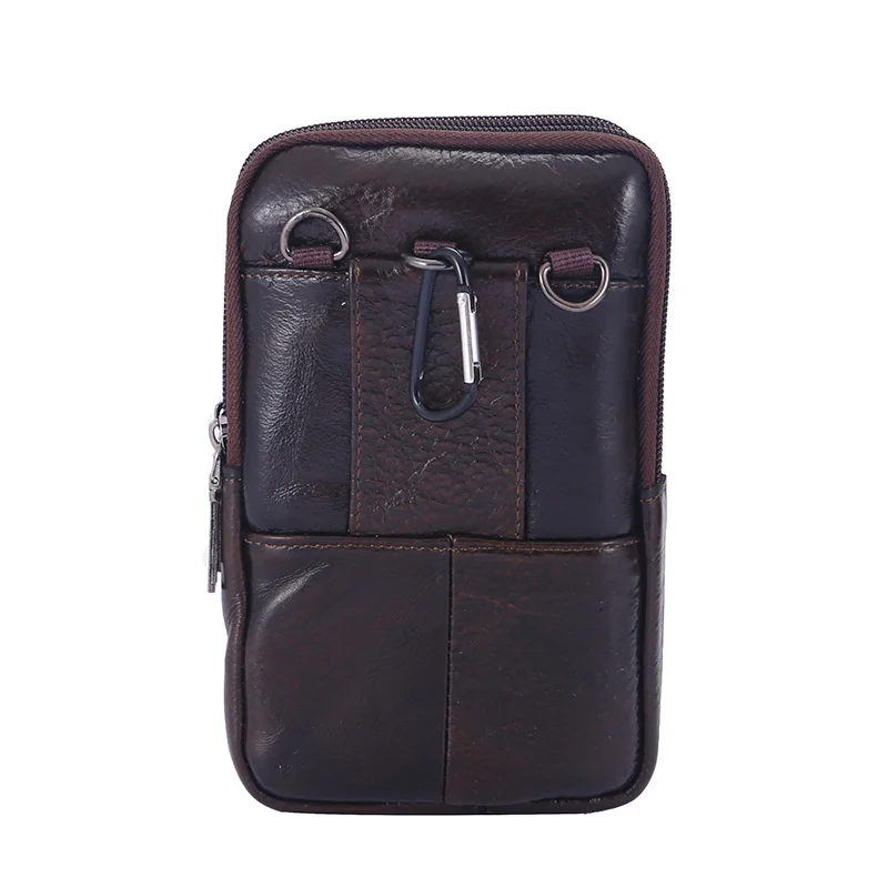 Bolso de mensajero de cuero de vaca para hombre, Cartera de bolsillo para teléfono móvil, pequeño bolso de cintura de viaje para hombre, bolso de pecho con múltiples bolsillos