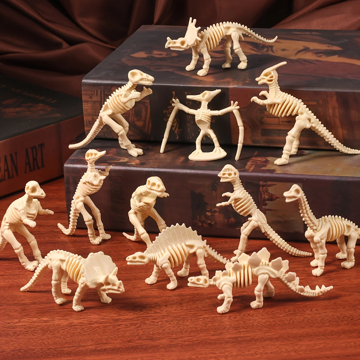 Esqueleto fósil de dinosaurio, huesos de figura de dinosaurio de plástico surtidos para niños, kit de excavación científica, recuerdos de fiesta, decoraciones de cumpleaños