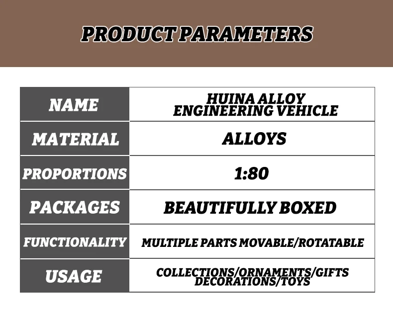 Huina 1:80 Alloy Engineering Car Model Excavator Dumper Dump Truck Loader Bulldozer Tractor Collection Toys for Kids Gifts