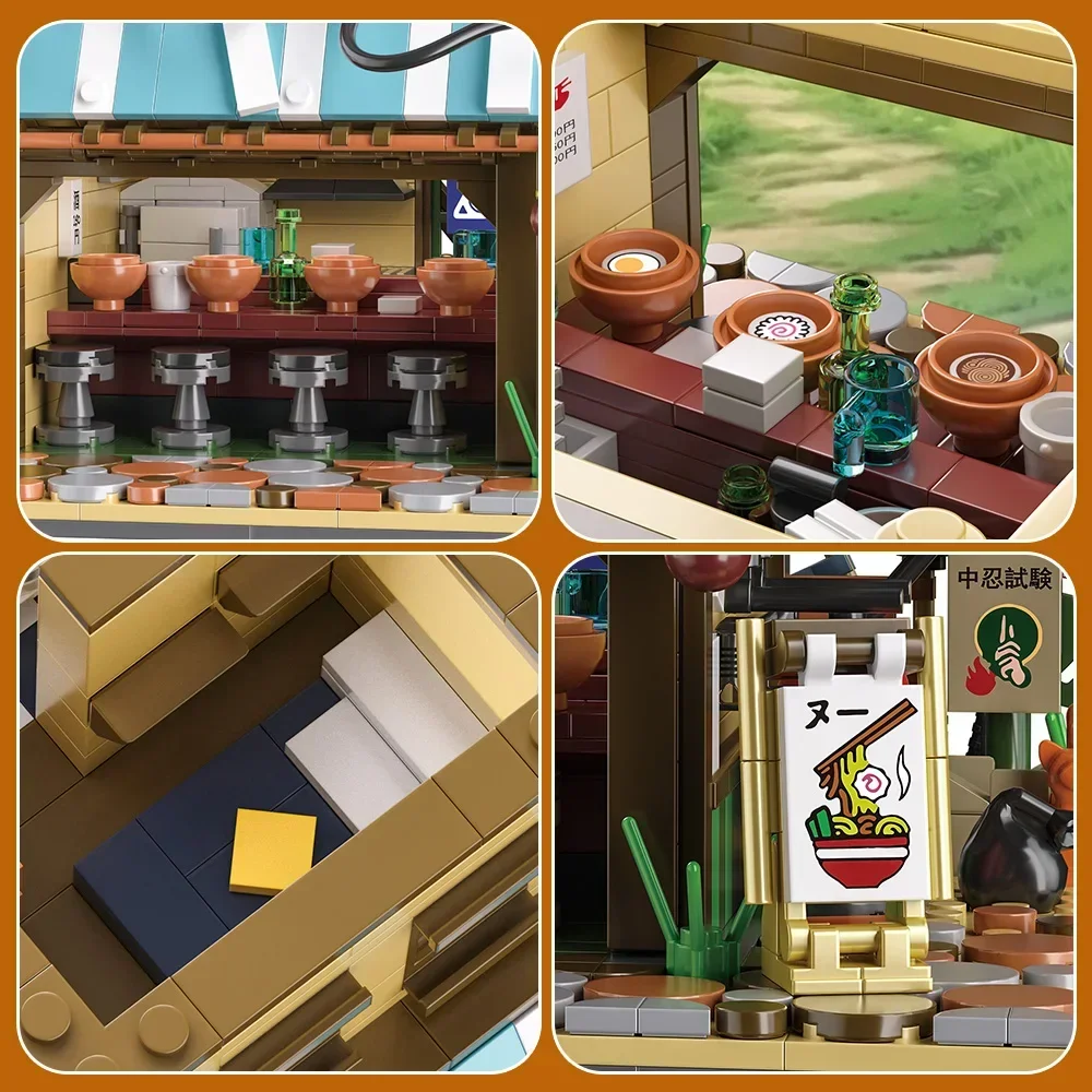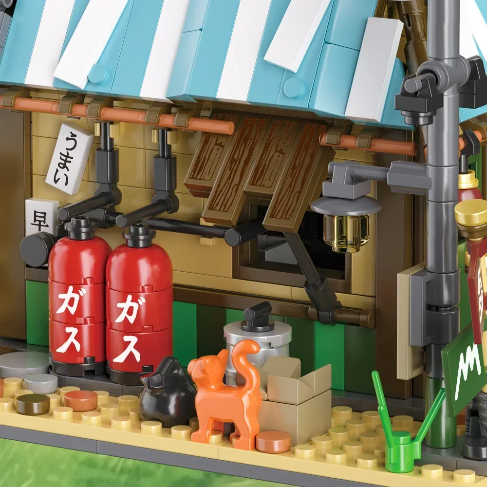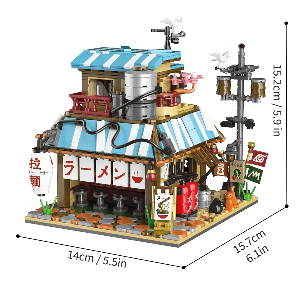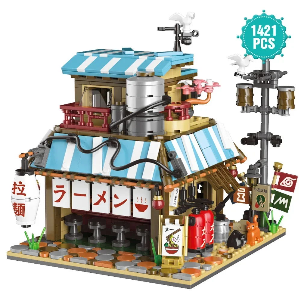 Ideas técnicas restaurante japonés vista a la calle bloques de construcción experto Ramen casa conjunto ladrillos DIY juguete para niños regalos de vacaciones