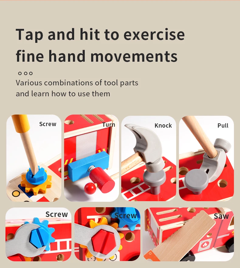 Aprendizaje STEM con juegos: Diseñado como juguetes Montessori, este juego de herramientas le permite a su niño usar las herramientas de forma segura mientras imita las tareas de carpintería.A través de actividades llenas de diversión como tornillos, clavar clavos y construir formas creativas como molinos de viento y helicópteros, los niños pueden mejorar sus habilidades motoras finas, su coordinación ojo-mano y sus habilidades de resolución de problemas.