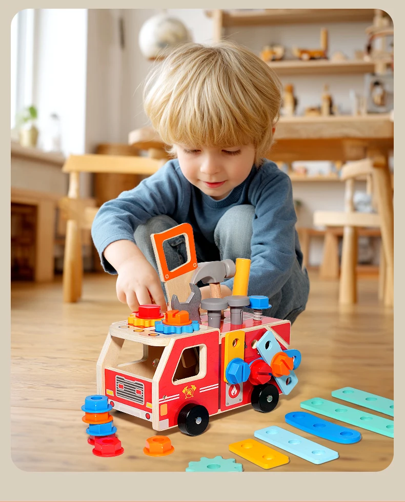 Juguete Montessori de madera, herramienta de simulación, coche de juguete, tuerca, tornillo, desmontaje, caja de herramientas de montaje, tallo educativo, juguete para niño
