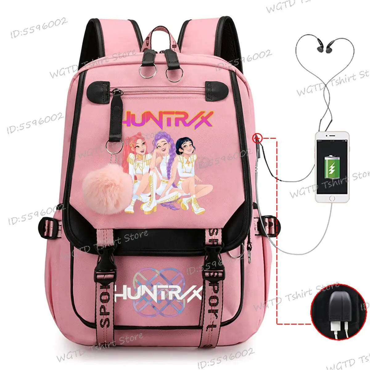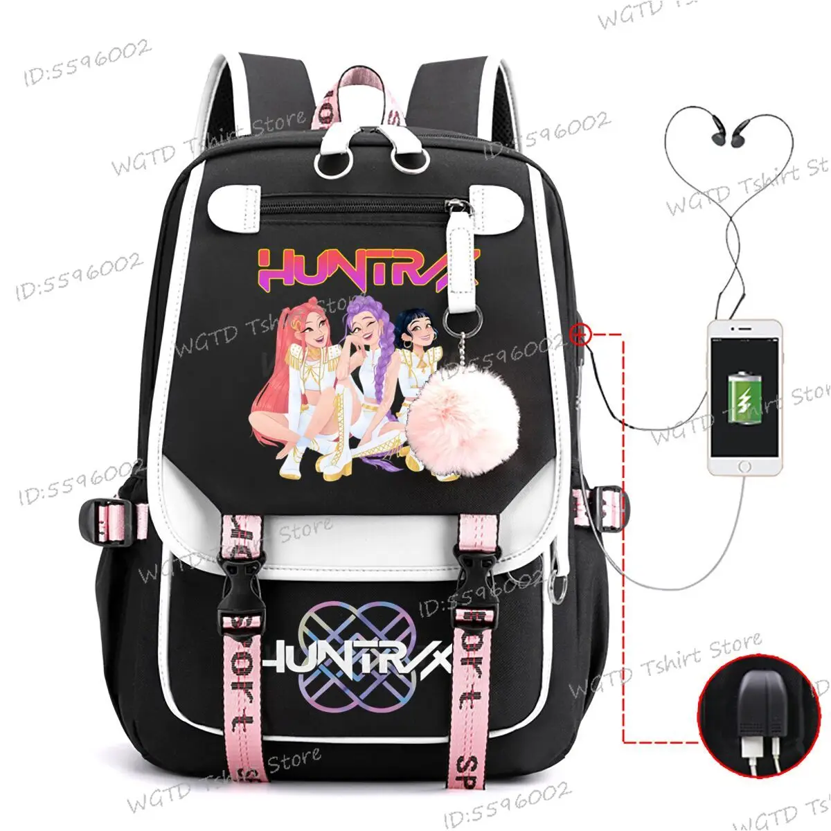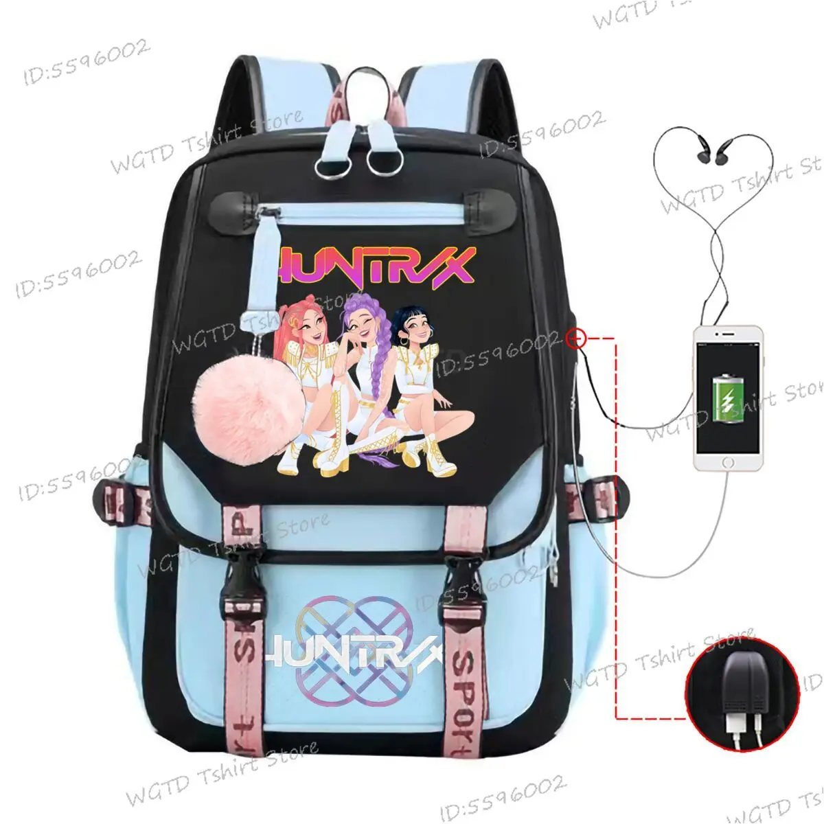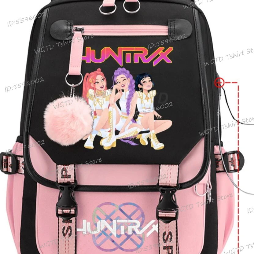 Mochila diaria KPop Demon Hunters, mochilas con estampado de película novedosa 2025, mochila escolar multifunción con carga USB para estudiantes y niñas