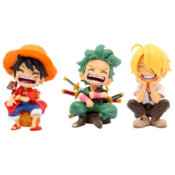 One Piece Luffy Zoro sentado versión Q figura de acción de moda dibujos animados anime adornos de coche de escritorio colección de muñecos regalo