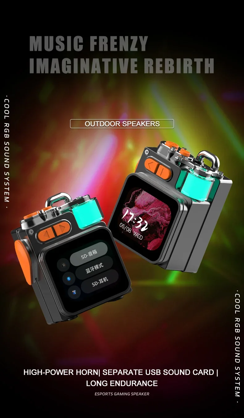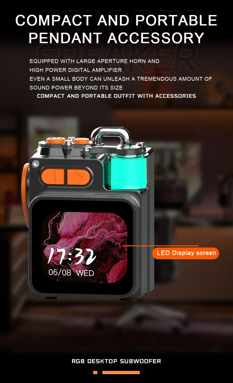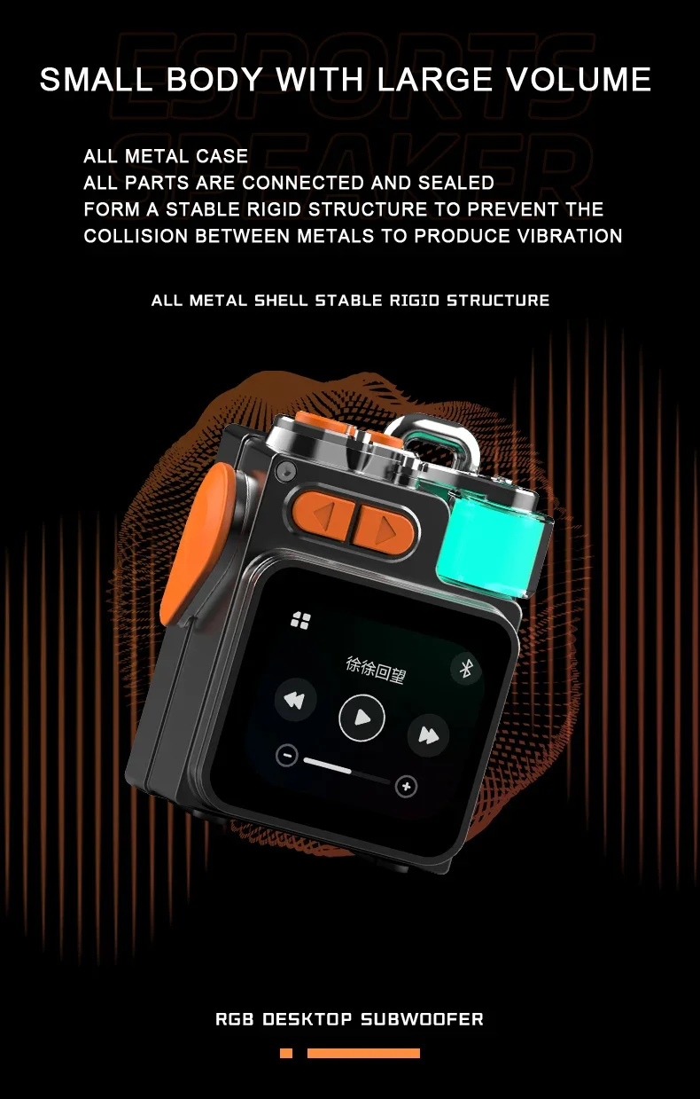 DK08 Altavoz mecánico de Metal inalámbrico Bluetooth 5,4 con pantalla LED RGB subwoofer de escritorio compatible con calendario y alarma
