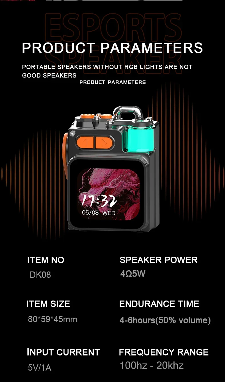 ● Tamaño pequeño, gran capacidad: Equipado con altavoces de gran tamaño de rango completo de 40 mm, el volumen es alto, la cobertura del campo sonoro es amplia y se puede usar tanto en interiores como en exteriores.