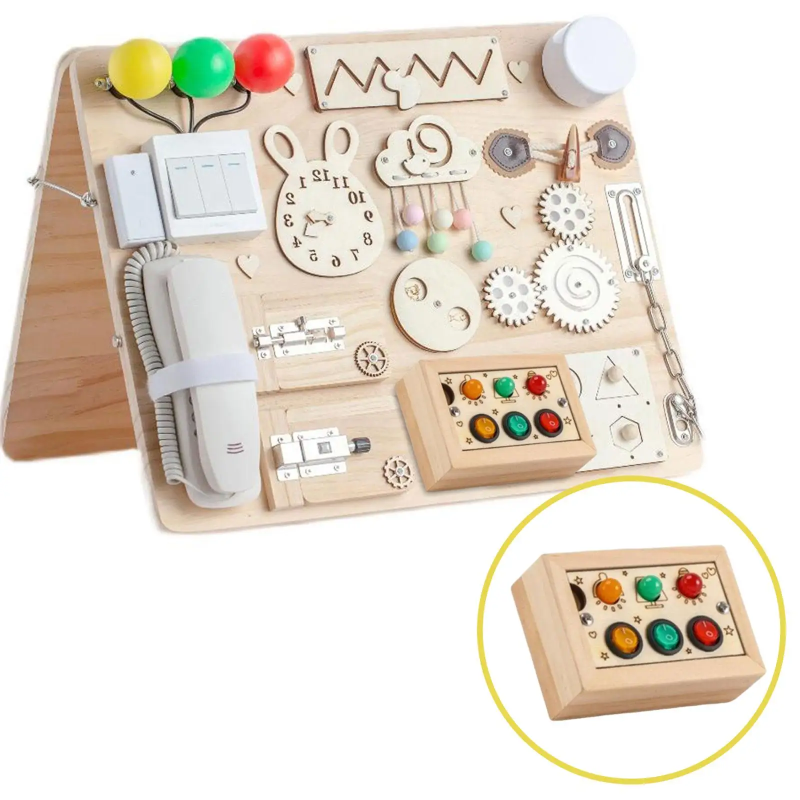 Tablero sensorial de actividades para niños y niñas, tablero LED ocupado, accesorios de enseñanza, Panel de Control de madera, juguetes de viaje para niños en edad preescolar