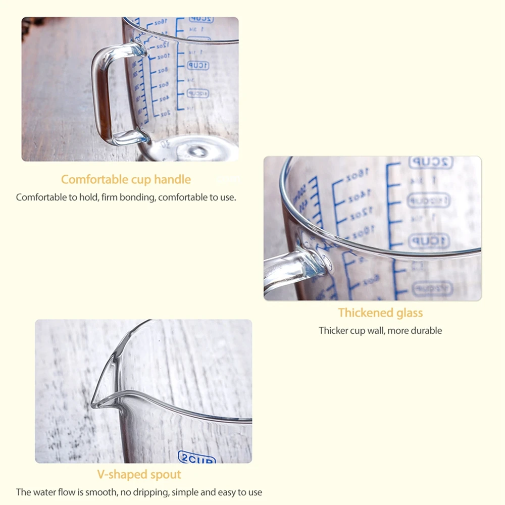 Materiales de alta calidad: las tazas medidoras de vidrio con alto contenido de borosilicato son livianas, seguras, no tóxicas, sin olores, sin BPA, fáciles de medir y verter, para satisfacer todas las necesidades de su cocina.