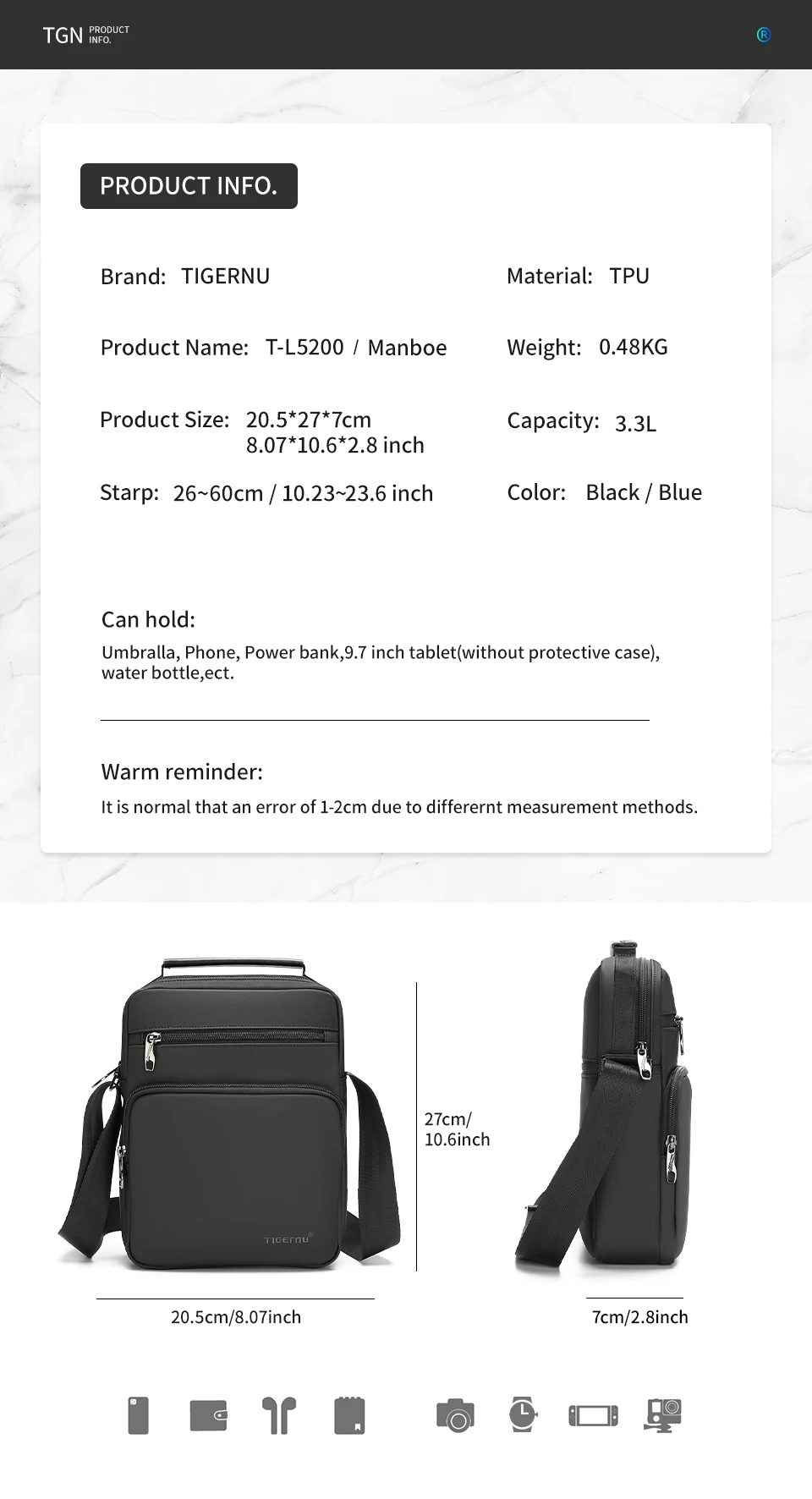 | Type | Men Casual Business Shoulder Bag, Fashion Waterproof Shoulder Bag |