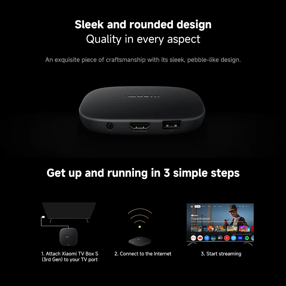 Versión global Xiaomi TV BOX S de tercera generación con enchufe original de la UE, le enviaremos el adaptador correcto gratuito adecuado para su país.
