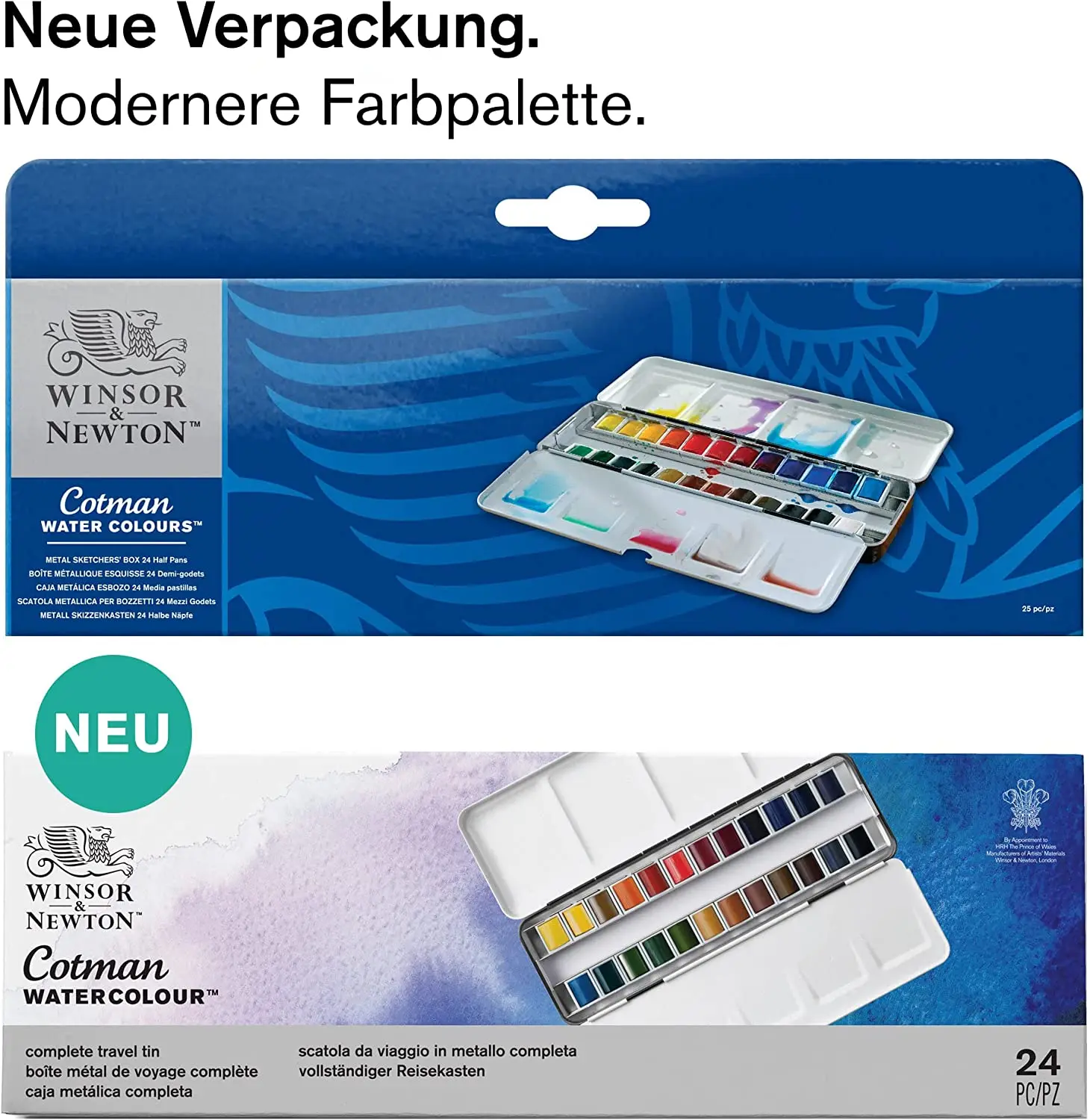 Winsor Newton Cotman pintura de acuarela sólida 24 medias sartenes colores Metal Color Pattle Set artista profesional pigmento Aquarelle